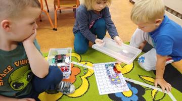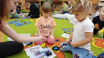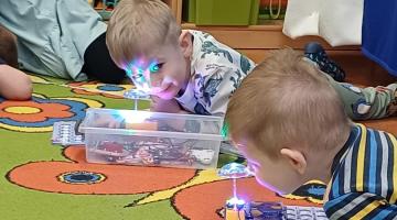 Maluszki biora udział w zajęciach ,,Mały inżynier", innowacyjnych warsztatach łaczacych zabawę z edukacją z elementami programowania i robotyki. Rozwijają swoją kreatywnośc, logiczne myślenie i pasję odkrywania a przy tym uczą się współpracy.