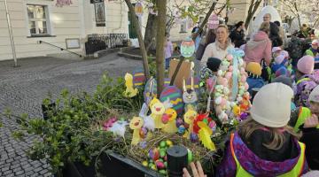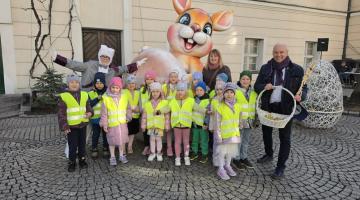 W czwartek byliśmy na imprezie miejskiej zatytułowanej "Poszukiwanie Zajączka Wielkanocnego". Niestety zajączka nie znaleźliśmy, ale za zaśpiewanie piosenki o wiośnie otrzymaliśmy pluszowego zajączka 😁. Podczas imprezy udekorowaliśmy własnoręcznie zrobionymi ozdobami klomb, zrobiliśmy pamiątkowe zdjęcie z Panem Prezydentem Markiem Kamińskim 🙂
