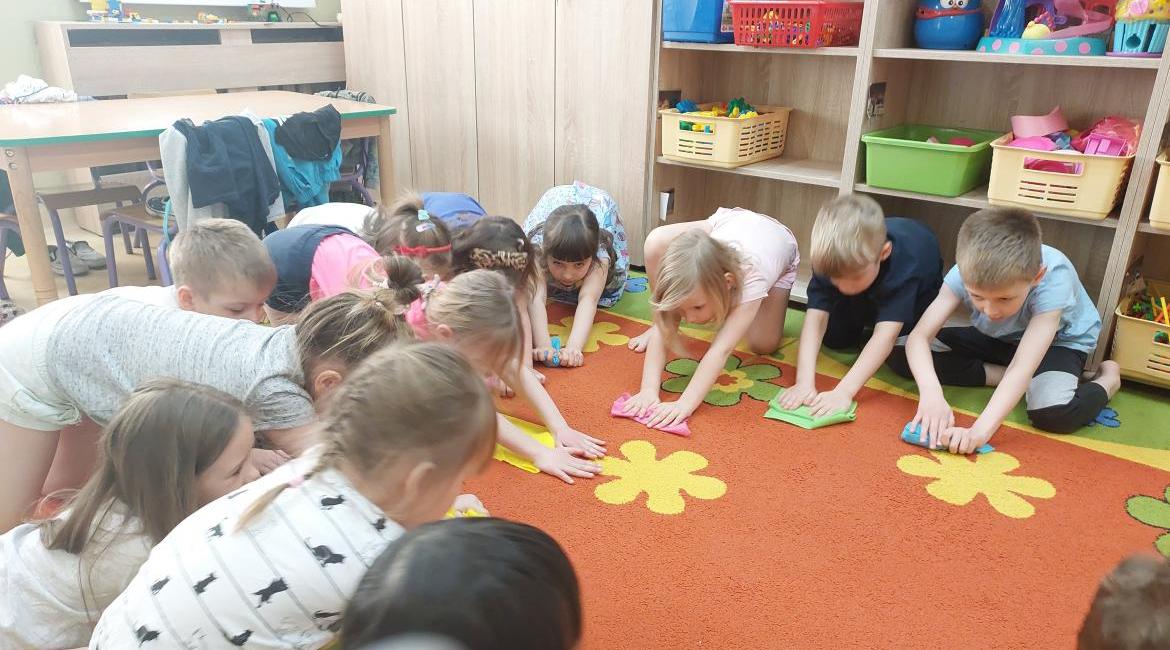 Początek tygodnia rozpoczęliśmy od powitania wiosny - były to wspólne zabawy z innymi grupami na placu przedszkolnym. We wtorek poznaliśmy zapis graficzny litery Ł, ł. Rozmawialiśmy również o wiosennych porządkach w ogrodzie, nazywając narzędzia ogrodnicze i określając ich funkcjonalność. Wykonaliśmy również wiosenną praca plastyczną. W środę na zajęciach matematycznych rozwiązywaliśmy zadania na dodawanie i odejmowanie. Na zajęciach muzycznych śpiewaliśmy piosenkę "Ogrodniczka" oraz ilustrowaliśmy ruchem utwór "Wiosenne porządki". W czwartek rozmawialiśmy o bezcennym darze, jakim jest woda - bez niej nie byłoby życia na ziemi. Poznaliśmy rodzaje zbiorników wodnych i omówiliśmy obieg wody w przyrodzie. Na zajęciach gimnastycznych ćwiczyliśmy z kolorowymi ściereczkami. W piątek oczywiście wiosenne kodowania. Wykonaliśmy też jako pracę plastyczną - pralkę. Pogoda w tym tygodniu wiosenna, więc nie zabrakło zabaw na placu przedszkolnym.